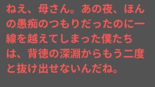 ぶっかけ ねえ、母さん。あの夜、ほんの愚痴のつもりだったのに一線を越えてしまった僕たちは、背徳の深淵からもう二度と抜け出せないんだね。│d_739644│ 本編はこちら発売日 : 2026-02-28収録 : 6ページジャンル : ノベル 熟女 人妻・主婦 近親相姦 寝取り・寝取られ・NTR 中出し フェラ ぶっかけ 母親 専売 男性向け 成人向け 歳の差 サークル : ママスキ 品番 : d... 2026.03.01 ぶっかけノベルフェラママスキ中出し人妻・主婦寝取り・寝取られ・NTR専売成人向け歳の差母親熟女男性向け近親相姦